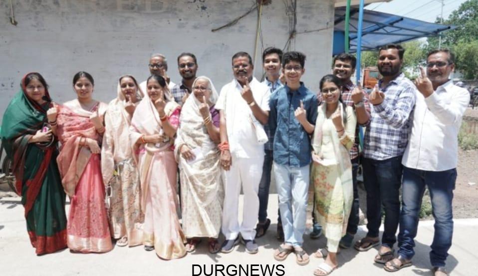 दुर्ग न्यूज़, 7 मई। दुर्ग लोकसभा क्षेत्र से कांग्रेस प्रत्याशी राजेन्द्र साहू ने आज मंगलवार सुबह 11 बजे दुर्ग शहर के वार्ड क्रमांक 38 मीलपारा के मतदान केंद्र पर पूरे परिवार के सदस्यों के साथ पहुंचकर अपना वोट डाला।