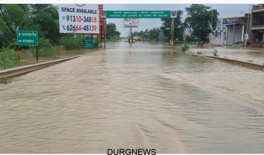 शिवनाथ नदी में बाढ़, राजनांदगांव दुर्ग मार्ग बंद, विधायक-महापौर ने किया प्रभावित क्षेत्र का दौरा