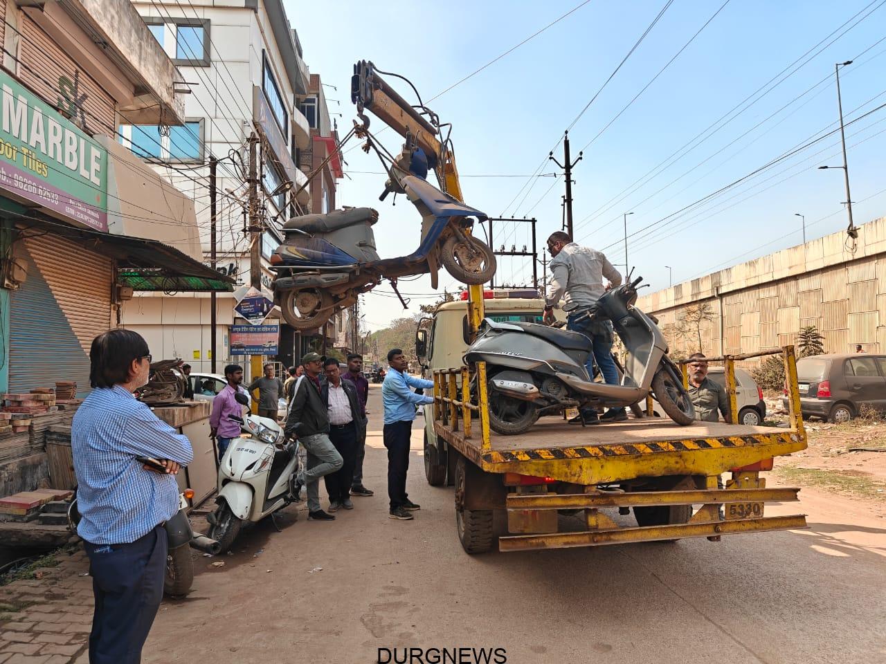 भिलाईनगर। नगर निगम भिलाई एवं यातायात विभाग की संयुक्त टीम द्वारा सर्विस रोड पर अवैध खड़े किये वाहनों को हटाने कार्यवाही की गई। नागरिक व आटो डीलरों द्वारा सड़क किनारे एवं बाजार के बीच में अवैध रूप से वाहन खड़ा कर दिया जाता है, जिसके कारण सड़क जाम हो जाता है और आवागमन बाधित होता है। इससे शहर में सड़क दुर्घटना होने की आशंका बनी रहती है। आटो स्टोर वालों द्वारा सर्विस रोड पर वाहन खड़ा कर रिपेयरिंग एवं वाशिंग का कार्य किया जाता है। साथ ही नागरिकों द्वारा अपने चार पहिया एवं दोपहिया वाहन चालक सर्विस रोड पर खड़ा कर इधर-उधर चले जाते है। जिसके कारण रोड से गुजरने वाले दूसरे वाहन चालको एवं पैदल चलने वालों को बहुत परेशानी का सामना करना पड़ता है। संयुक्त टीम द्वारा वाहनों को हटाकर जब्त किया गया। उन्हें दोबारा वाहन खड़ा न करने की समझाइस दी गई।