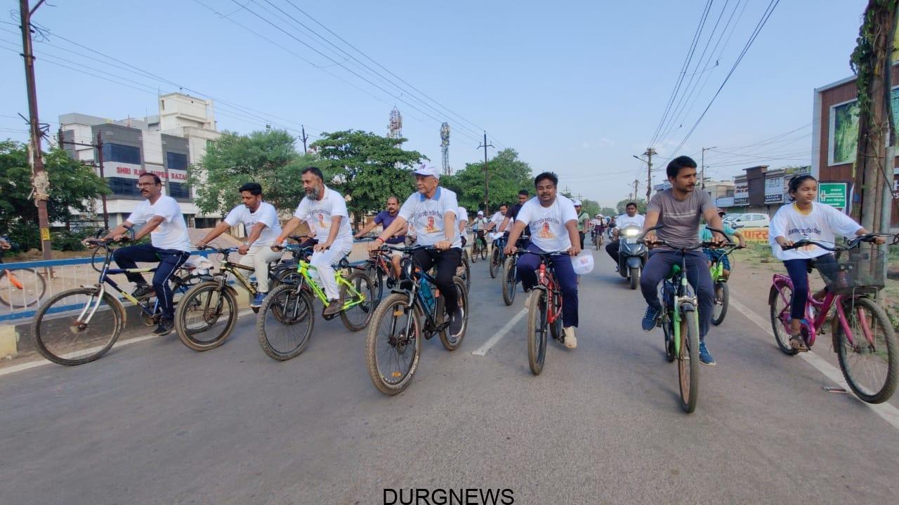 दुर्ग न्यूज, 3 जून। राष्ट्रीय साइकिल दिवस पर आज सुबह रिसाली क्षेत्र में जागरूकता रैली निकली जिसमें बच्चे, बड़े और बुजुर्गों ने शिरकत कर लोगों को राष्ट्रीय साइकिल दिवस की बधाई देते हुए स्वस्थ्य रहने तथा पर्यावरण को सुरक्षित बनाने साइकिल का प्रयोग कम दूरी पर आवाजाही के लिए करने का लोगों से आह्वान किया गया।