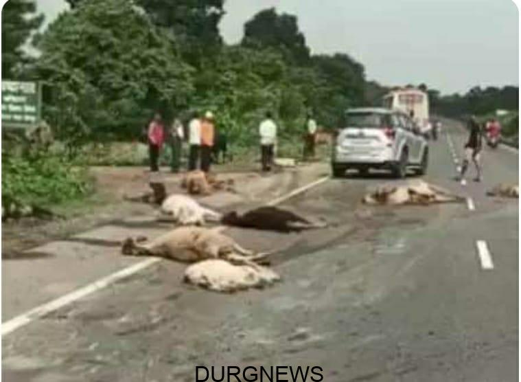 तेज रफ़्तार बस ने बरपाया कहर 17 मवेशियों को रौंदा