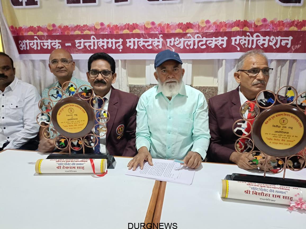 अभिनंदन कार्यक्रम के दौरान प्रेस वार्ता को संबोधित करते हुए छत्तीसगढ़ मास्टर्स एथलेटिक्स एसोशिएशन के सचिव ताजुद्दीन ने बताया कि राज्य खेल अलंकरण समारोह में सम्मानित टीआर साहू बीएसपी से सेवानिवृत्त हैं। वहीं बीआर साहू सीआईएसएफ से सेवानिवृत्त हुए हैं। यह दोनों खिलाड़ी मध्यप्रदेश एवं छत्तीसगढ़ का प्रतिनिधित्व का राष्ट्रीय प्रतियोगिता में भी पदक प्राप्त किया, साथ ही भारत के लिए एशियन मास्टर एथलेटिक्स चैम्पियनशिप में पदक प्राप्त किया। इनकी इन्हीं उपलब्धियों के आधार पर लंबे समय से मास्टर्स एथलेटिक्स एवं एथलेक्सि प्रतियोगिता में योगदान के लिए यह सम्मान दिया गया। ताजुद्दीन ने बताया कि उक्त दोनों खिलाड़ियों को राज्य सरकार ने सम्मान स्वरूप 25,000 रुपए की राशि का चेक, प्रमाण पत्र व स्मृति चिह्न भेंट किया गया। ताजुद्दीन ने बताया कि मास्टर्स एथलीट एसोशिएशन के लिए यह गर्व का विषय है। पिछले पांच वर्षों से राज्य सरकार खेल अलंकरण नहीं दे रही थी और इस बार फिर से यह शुरू किया गया। उन्होंने इसके लिए राज्य सरकार का आभार माना। इसके साथ ही अवार्ड पाने वाले मास्टर्स खिलाड़ियों को भी एसोशिएशन की ओर से बधाई दी गई। साथ ही ताजुद्दीन ने कहा कि राज्य खेल अलंकरण में दी जाने वाली प्रोत्साहन राशि कई वर्षों से बढ़ाई नहीं गई है। उन्होंने कहा कि सरकार को प्रोत्साहन राशि में बढ़ोत्तरी करनी चाहिए।