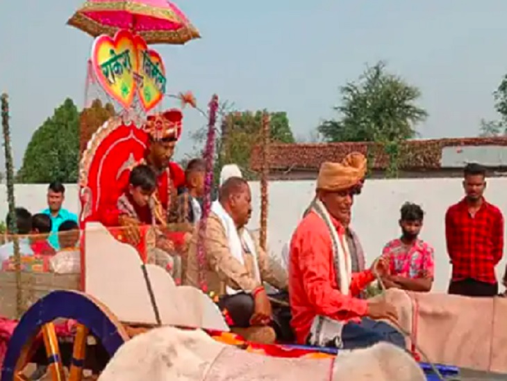 राजधानी रायपुर से अनुराग की बारात दोपहर 4 बजे के आस-पास महासमुंद के एक पैलेस में पहुंच गई थी। यहां लड़की वालों ने बारातियों को पहले स्वागत किया। फिर बारात जनमासा स्थल से जब निकली, तब देखने वाले भी हैरान रह गए। रोड में दूल्हा कार या घोड़े पर नहीं, बल्कि बैलगाड़ी में बैठा हुआ था। अगल-बगल बैंड और डीजे बज रहा था।