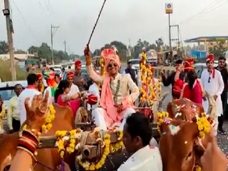 अक्सर बड़े शहरों में बड़ी-बड़ी शादियां होती हैं। उसमें लग्जरी वाहन से लेकर लाइटिंग और बैंड होता है। इस सबके बीच मालीघोरी निवासी राकेश देशमुख की बारात बैलगाड़ी से निकली। बताया गया कि राकेश की शादी उसी गांव में रहने वाली निर्मला देशमुख के साथ तय हुई थी। उसकी शादी 18 फरवरी को होनी थी। ऐसे में राकेश ने ये तय किया था कि वह अपनी बारात बैलगाड़ी में लेकर निकलेगा।पढ़ें पूरी खबर