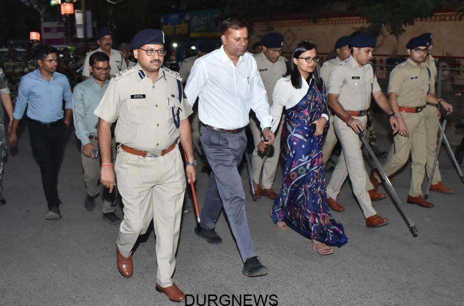 लोकसभा निर्वाचन 2024 : पुलिस एवं प्रशासनिक अधिकारियों का दुर्ग में फ्लैग मार्च संभागायुक्त, आईजी, कलेक्टर एवं एसपी हुए शामिल