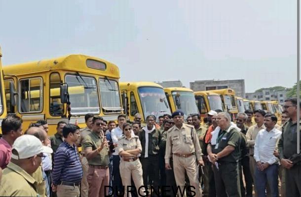 स्कूली छात्र/छात्राओं के सुरक्षित परिवहन को ध्यान में रखते हुए पुलिस ग्राउण्ड सेक्टर 6 भिलाई में की गई स्कूल बसों की जांच