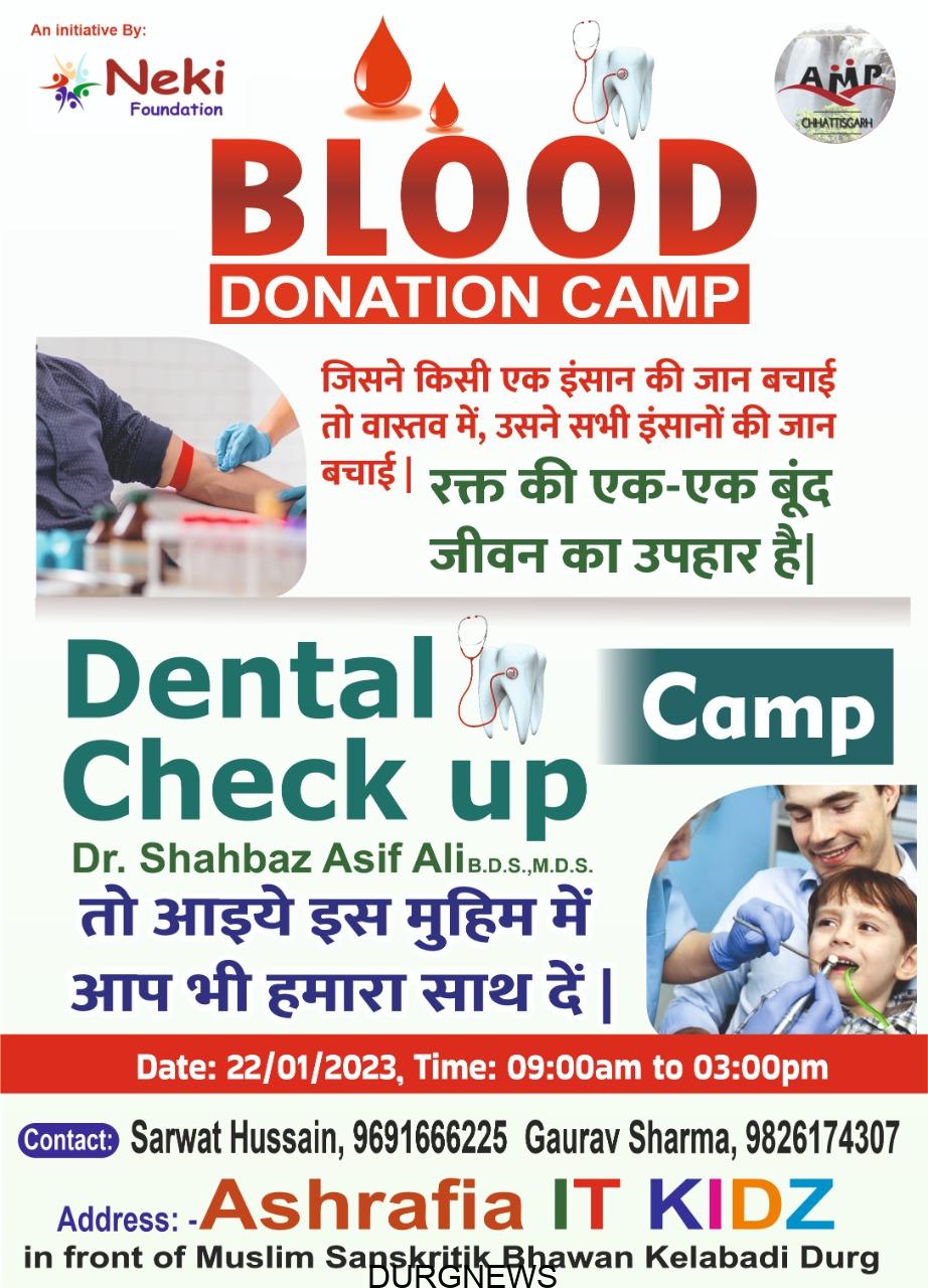 दुर्ग। नेकी फाउंडेशन के द्वारा गणतंत्र दिवस के शुभ अवसर पर लोगों की मदद के उद्देश्य से विशाल रक्तदान शिविर का आयोजन किया जाता है जो कि इस वर्ष रविवार 22 जनवरी 2023 को अशरफिया आई टी किड्स मुस्लिम सांस्कृतिक भवन केलाबाड़ी दुर्ग (छ.ग.) में आयोजन किया जा रहा है।