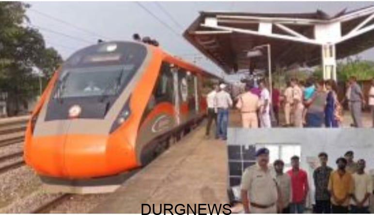 भिलाई। दुर्ग-विशाखापत्तनम वंदे भारत पर ट्रायल के दौरान शुक्रवार रात को कुछ युवकों ने महासमुंद के बागबाहरा के पास पथराव कर दिया। इससे कोच सी-2, सी-4, सी-9 की खिड़की में दरार आ गई। ट्रेन के स्टाफ ने इसकी जानकारी रेलवे सुरक्षा बल को दी। रेलवे पुलिस ने पांच युवकों को गिरफ्तार कर लिया है। उन्हें शनिवार को रायपुर रेलवे कोर्ट में पेश किया जाएगा। पांचों आरोपितों ने पूछताछ में खुद को कांग्रेस कार्यकर्ता बताया है। हालांकि अभी उनके नामों का खुलासा नहीं किया गया है।