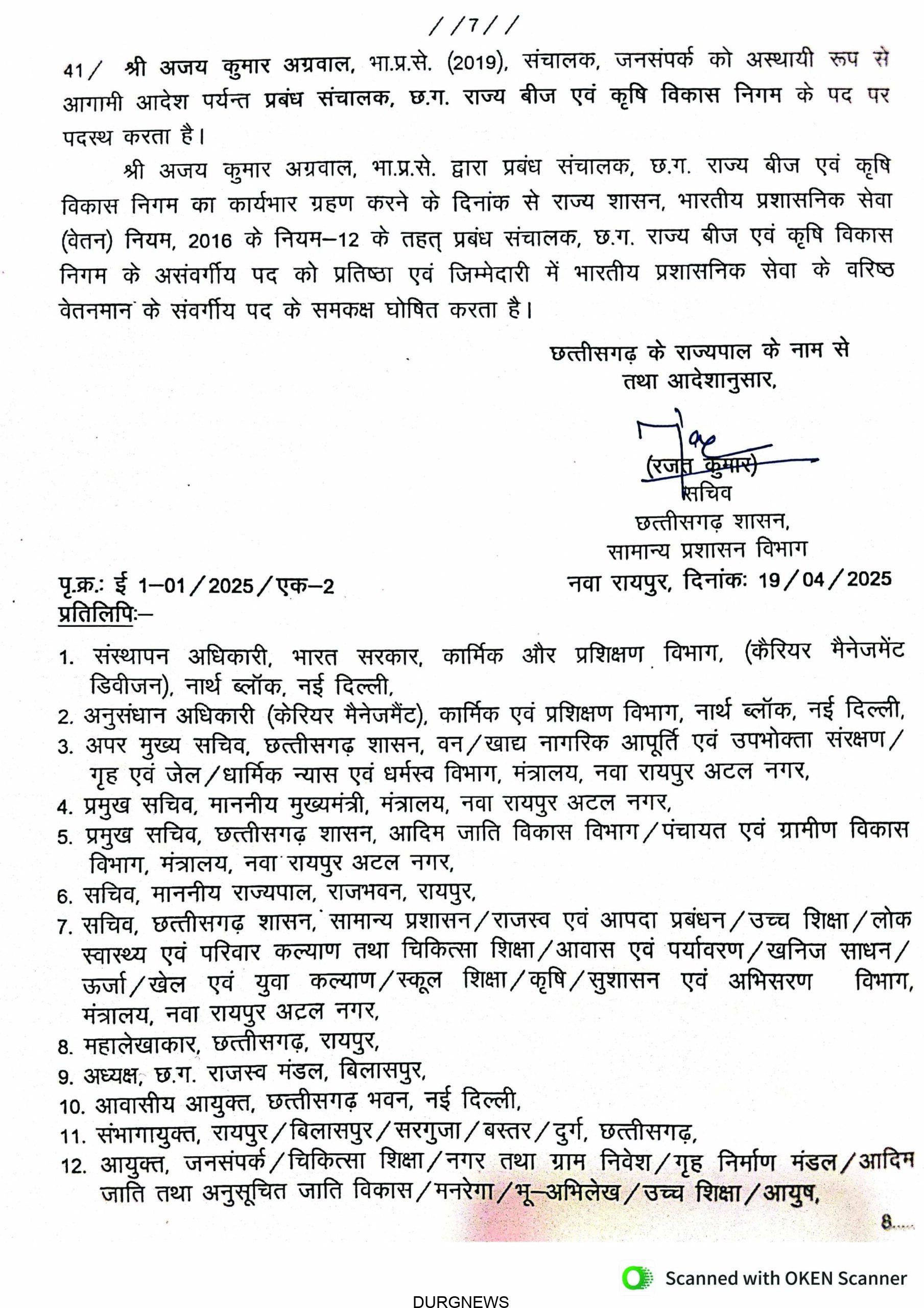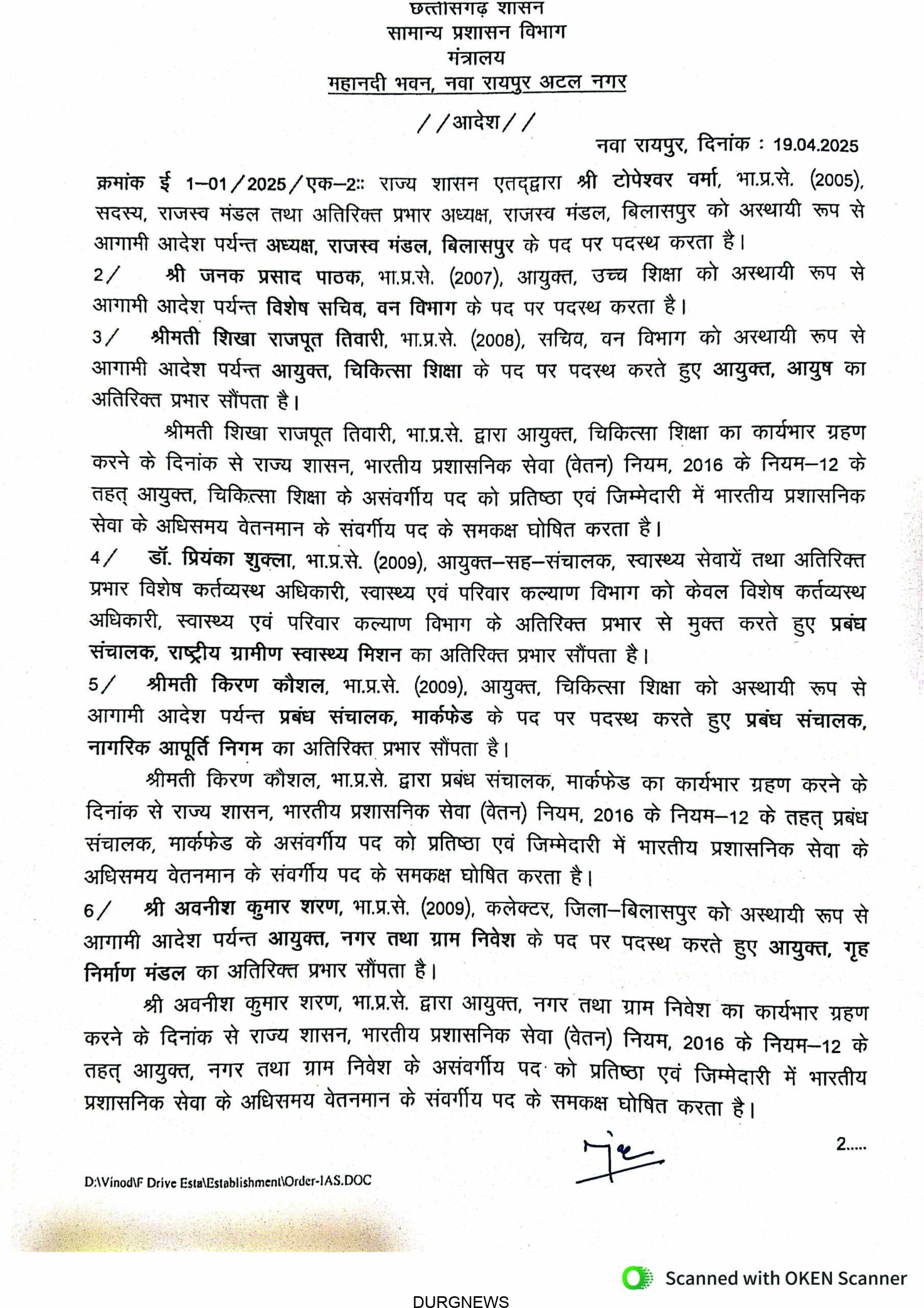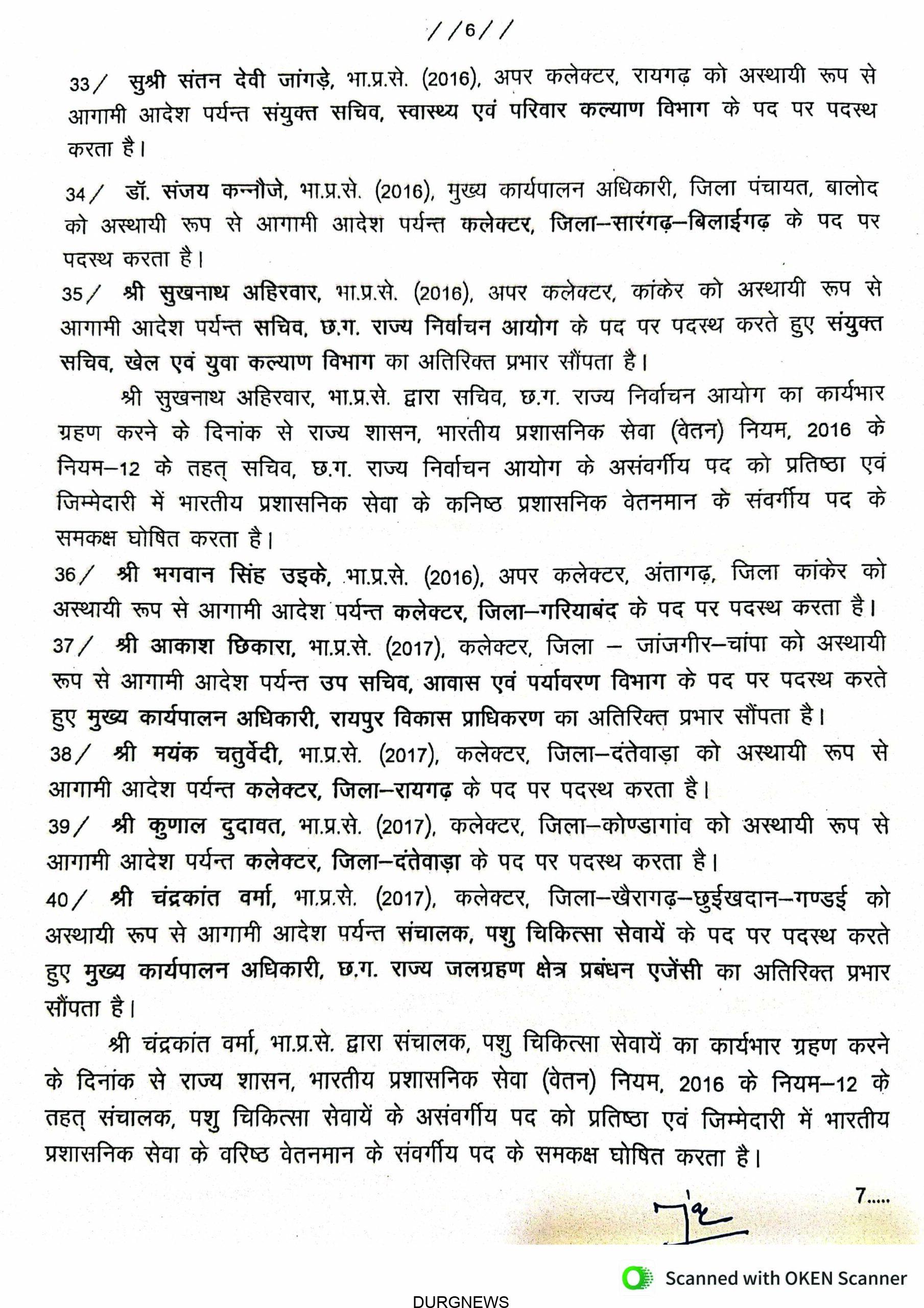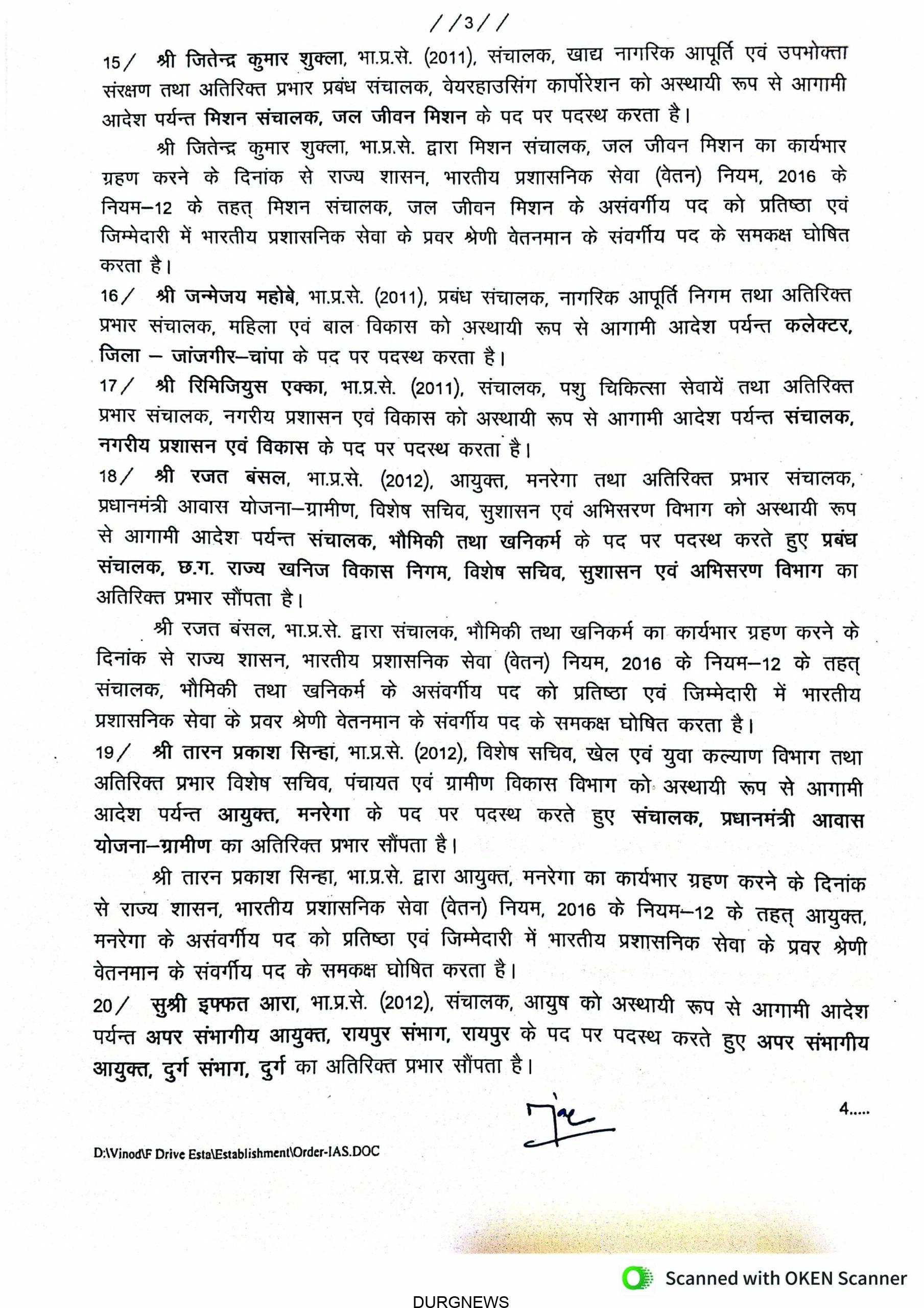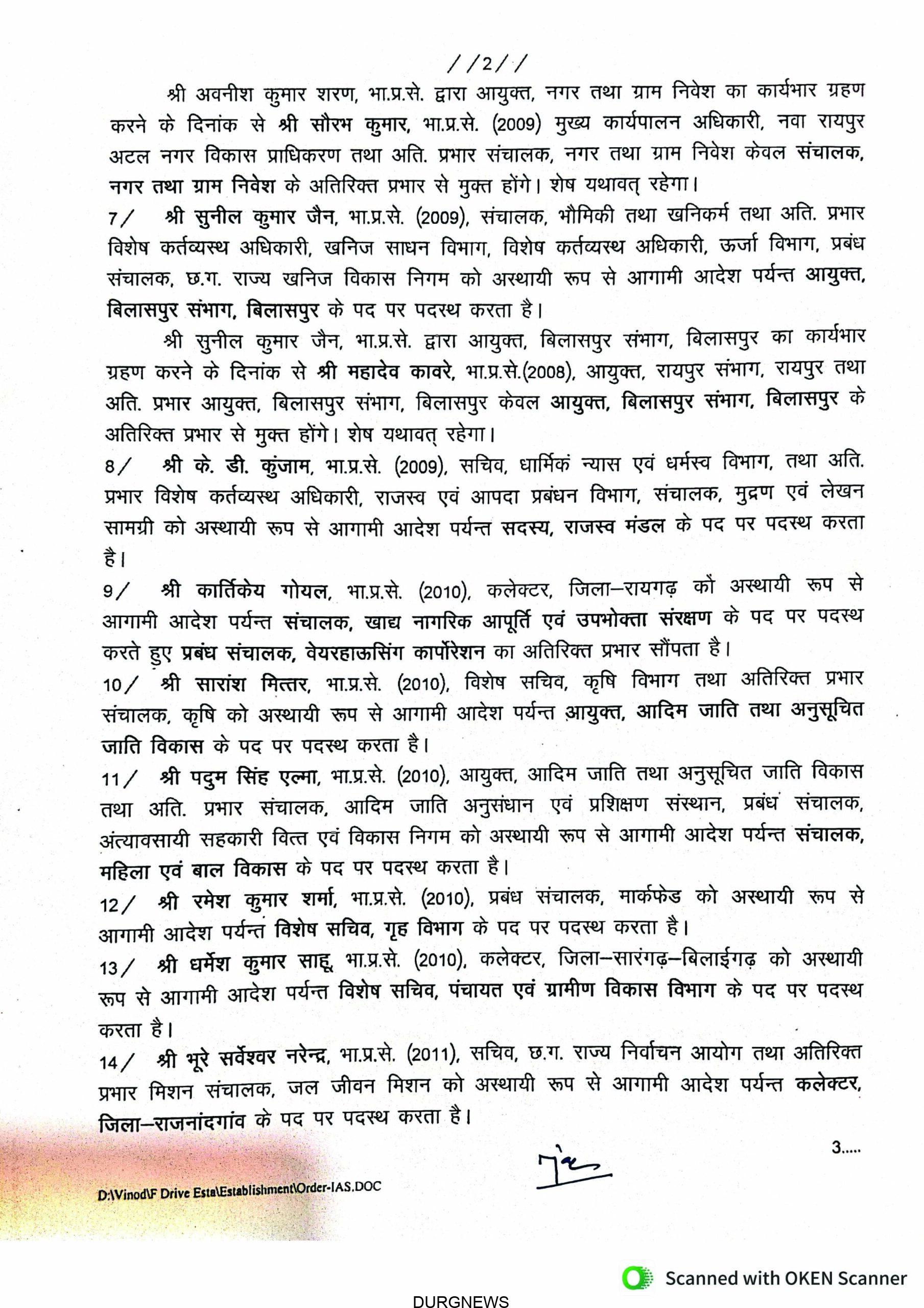 रायपुर। राज्य सरकार ने बड़े पैमाने पर आईएएस अधिकारियों का तबादला आदेश जारी किया है, जिसमें कई जिलों के कलेक्टर बदले गए हैं। कई अफसरों को नई जिम्मेदारी सौंपी गई है। देखें जारी आदेश –