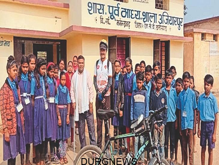 फिट इंडिया एंड सेव एनवायर्नमेंट अभियान के अंतर्गत शनिवार को सतीश द्विवेदी के द्वारा मनेंद्रगढ़ से बैकुंठपुर व वापस मनेंद्रगढ़ कुल 104 किलोमीटर की साइकिल यात्रा की गई। वापसी के दौरान रास्ते में पड़ने वाले पूर्व माध्यमिक शाला उजियारपुर में बच्चों को पर्यावरण संरक्षण पर विस्तृत जानकारी दी। बता दें कि पर्यावरण को बचाने के लिए सतीश द्विवेदी प्रयासरत हैं।