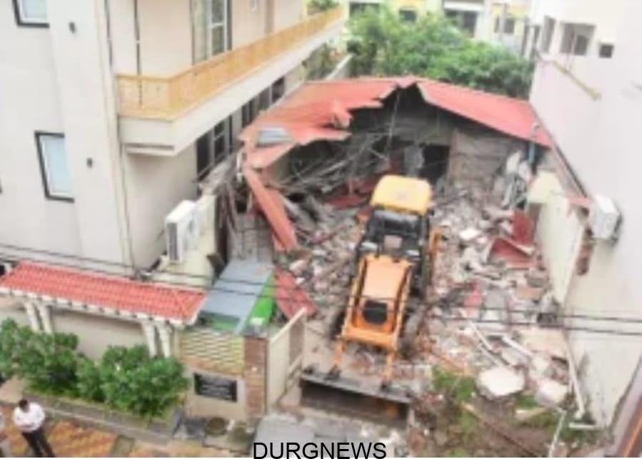 रायपुर। राजधानी रायपुर में आज सूदखोर और फरार परदेसिया हिस्ट्रीशीटर रोहित तोमर और वीरेंद्र तोमर के ऑफिस को तोड़ने के लिए निगम की टीम पहुंची और उनके ऑफिस पर बुलडोजर कार्रवाई की। निगम की टीम के साथ भारी संख्या में पुलिस बल भी मौजूद रहा। बताया जा रहा है कि, रोहित तोमर ने अपनी पत्नी के नाम पर ऑफिस खोल रखा था और यहीं से सूदखोरी का काम करता था। बता दें कि, परदेसिया बदमाश तोमर बंधुओं का घर और ऑफिस भाटागांव के साईं नगर में स्थित है। निगम की टीम ने तोमर बंधुओं के दफ्तर पर बुलडोजर चलाया है। इस दौरान पुलिस और निगम की टीमें अतिरिक्त बल के साथ मौके पर पहुंची थी। इस कार्रवाई के बाद पुलिस की टीम ने तोमर बंधुओं की तलाश तेज कर दी है।