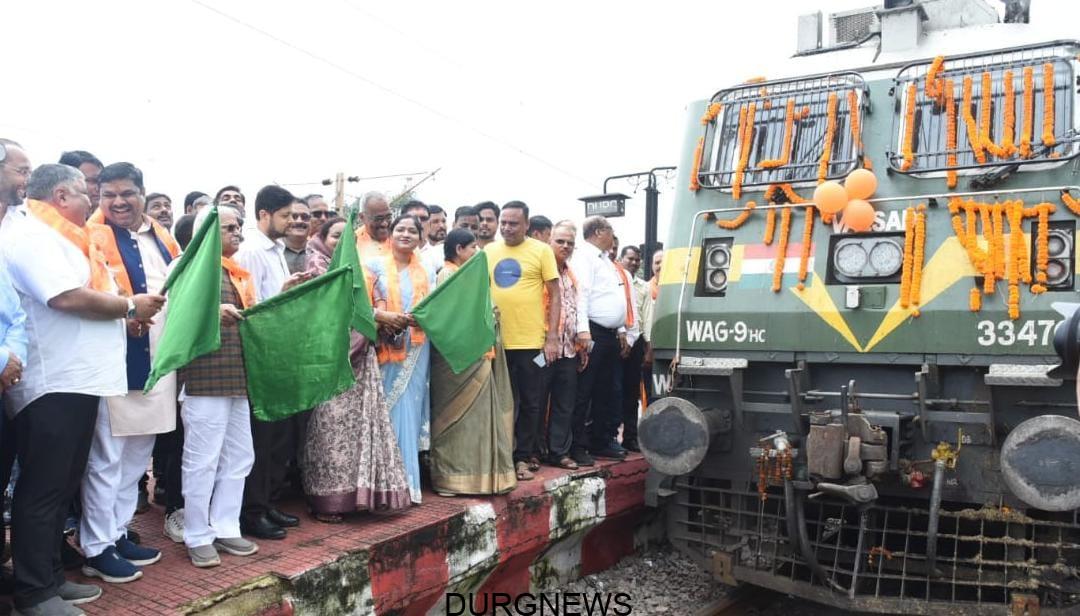 दुर्ग रेलवे स्टेशन से श्रद्धालुओं से भरी स्पेशल ट्रेन को पर्यटन, संस्कृति एवं धर्मस्व मंत्री राजेश अग्रवाल, स्कूल शिक्षा मंत्री गजेन्द्र यादव, अहिवारा विधायक डोमनलाल कोर्सेवाड़ा, महापौर श्रीमती अलका बाघमार, जिला पंचायत अध्यक्ष श्रीमती सरस्वती बंजारे ने श्रद्धालुओं से भरी ट्रेन को हरी झंडी दिखाकर रवाना किया। अयोध्या यात्रा के लिए ट्रेन पहले राजनांदगांव से रवाना होकर दुर्ग रेलवे स्टेशन पहुंची, जहां श्रद्धालुओं का स्वागत फूल मालाओं और बाजे-गाजे के साथ किया गया।