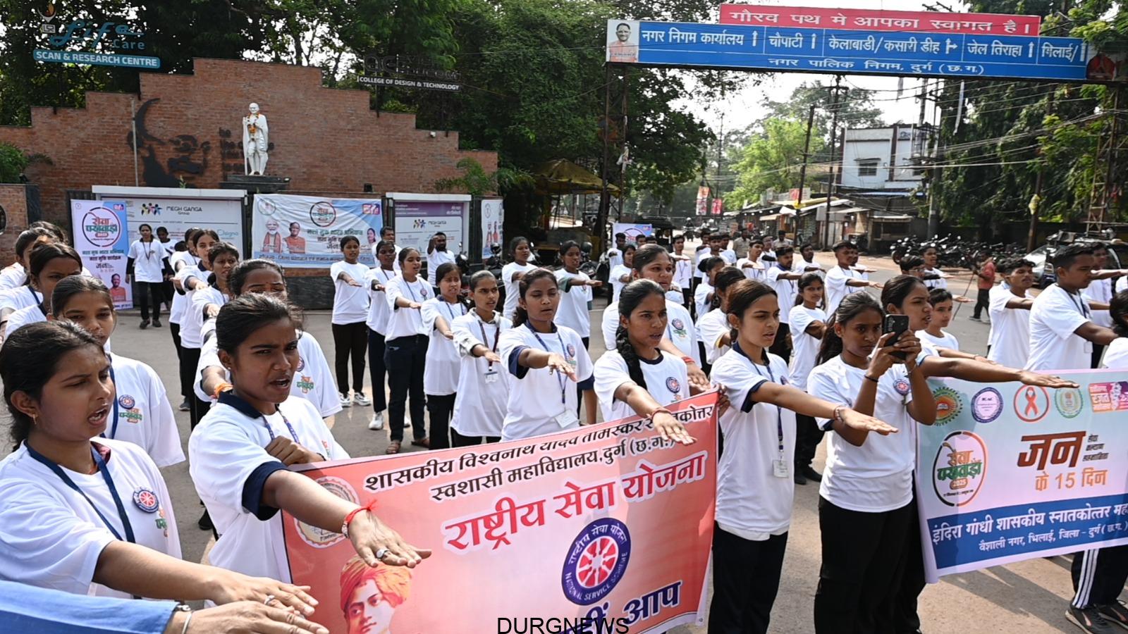दुर्ग। रजत जयंती महोत्सव के अवसर पर 17 सितम्बर से 2 अक्टूबर 2025 तक जिले में सेवा पखवाड़ा का आयोजन किया जा रहा है। जिसके तहत आज नशामुक्त भारत अभियान अंतर्गत नशामुक्ति थीम पर मैराथन का आयोजन महात्मा गांधी चौक हिन्दी भवन के सामने दुर्ग में जिला प्रशासन एवं समाज कल्याण विभाग दुर्ग द्वारा किया गया। जिसमें लगभग 200 छात्र/छात्राएं सम्मिलित हुए। कार्यक्रम का प्रारंभ महात्मा गांधी की पूजा अर्चना, दीप प्रज्जवलन के साथ किया गया। उसके पश्चात् मैराथन दौड़ में सम्मिलित सभी प्रतिभागियों को उपस्थित जनप्रतिधियों एवं अधिकारियों द्वारा हरी झण्डी दिखाकर रवाना किया गया। यह मैराथन दौड़ महात्मा गांधी चौक से नगर निगम दुर्ग होते हुए पुनः वापस महात्मा गांधी चौक में समाप्त हुई। उक्त अवसर पर सम्मिलित छात्र/छात्राओं को नशामुक्ति पर आधारित स्लोगन लिखे टी-शर्ट का वितरण किया गया। उक्त कार्यक्रम में मुख्य रुप से वेदनारायण चन्द्राकर पार्षद, लीलाधर पाल, पार्षद एवं मेयर इन कॉउंसिलिंग मेंबर, सुमीत अग्रवाल, आयुक्त नगर निगम दुर्ग, उपसंचालक, समाज कल्याण एपी गौतम, श्रीमती शुक्ला जिला शिक्षा विभाग दुर्ग, तरुण साहू, साइंस कॉलेज दुर्ग तथा समाज कल्याण विभाग दुर्ग के अन्य अधिकारी/कर्मचारीगण एवं छात्र/छात्राएं उपस्थित रहे। उक्त कार्यक्रम में नशीले पदार्थों एवं मादक द्रव्यों के दुष्प्रभाव की जानकारी देते हुए ड्रग डिमांड की रोकथाम एवं इसमें कमी लाने संबंधी जानकारी देकर समस्त प्रकार के नशीली वस्तुओं एवं मादक द्रव्यों से दूर रहने का आह्वान किया गया। उपस्थित जनसमुदाय ने जनजागरुकता लाकर स्वस्थ एवं स्वच्छ समाज निर्माण करने का संदेश दिया। कार्यक्रम के अन्त में नशामुक्ति की शपथ दिलायी गई।