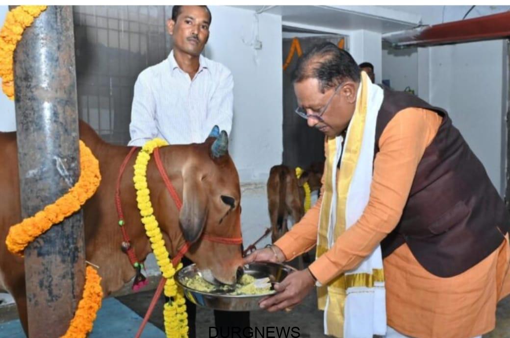 रायपुर। गोवर्धन पूजा के पावन अवसर पर मुख्यमंत्री विष्णु देव साय ने आज रायपुर स्थित मुख्यमंत्री निवास परिसर की गौशाला में गौमाता की पूजा-अर्चना की। उन्होंने गौमाता को खिचड़ी खिलाकर पारंपरिक गोसेवा की परंपरा निभाई और प्रदेशवासियों की सुख-समृद्धि, शांति व खुशहाली की कामना की।