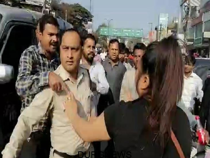 लड़की पुलिस भिड़ी, युवक ने जवान का कॉलर पकड़ा, सड़क होने लगी फाईट