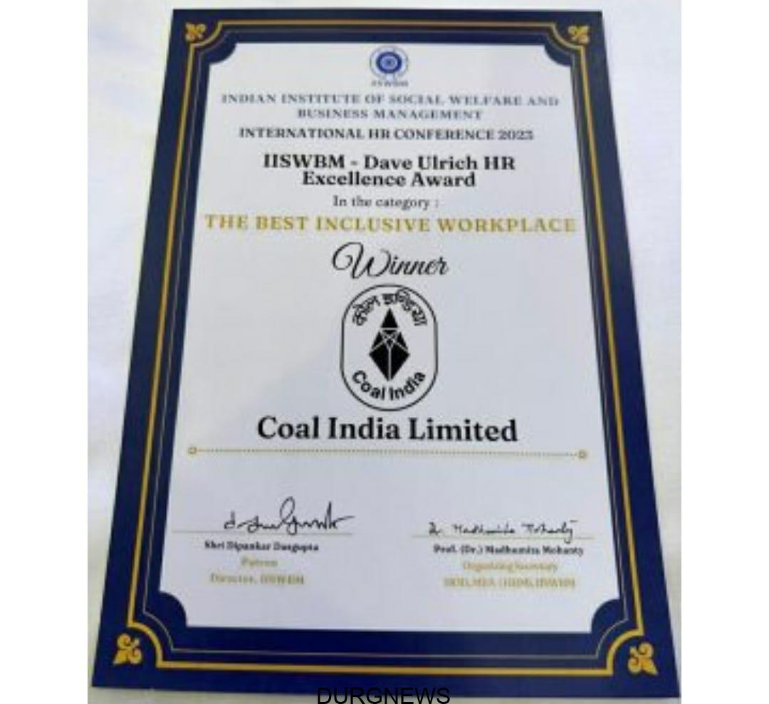 कोलकाता (दुर्ग न्यूज) 2 मार्च। महारत्न कोल इण्डिया को डेव अलरीच एचआर एक्सीलेंस अवार्ड प्राप्त हुआ है। यह अवार्ड आईआईएसडब्ल्यूबीएम संस्थान द्वारा बेस्ट इन्क्लूसिव वर्क प्लेस श्रेणी में कोलकाता में आयोजित समारोह में दिया गया। इस हेतु आयोजित भव्य समारोह में कोल इण्डिया के निदेशक कार्मिक एवं औद्योगिक संबंध विनय रंजन ने विश्व प्रसिद्ध मैनेजमेंट गुरू डेव अलरीच के हाथों यह पुरस्कार ग्रहण किया।