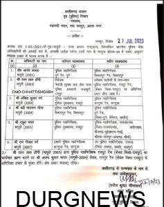 दुर्ग न्यूज, 27 जुलाई। छत्तीसगढ़ राज्य शासन की ओर से जारी तबादला आदेश में 6 आईपीएस अफसरों का स्थानांतरण कर दिया गया है। दुर्ग आईजी आनंद छाबड़ा को बिलासपुर तथा दुर्ग से बिलासपुर रेंज आईजी बद्रीनारायण मीणा को पुन: दुर्ग लाया गया है। अंकित गर्ग को रायपुर से सरगुजा रेंज भेजा गया है। जबकि सरगुजा के प्रभारी आईजी रामगोपाल गर्ग को डीआईजी रायगढ़ बनाया गया है।