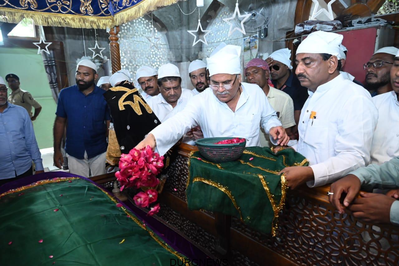 दुर्ग न्यूज, 11 सितंबर। मुख्यमंत्री भूपेश बघेल ने कोसरिया यादव महासभा द्वारा आयोजित श्रीकृष्ण जन्माष्टमी शोभायात्रा कार्यक्रम में शामिल होने के पूर्व दुर्ग के पुराना बस स्टैण्ड स्थित हजरत बाबा सैय्यद अब्दुर्रहमान शाह काबुली रहमतुल्लाह अलैह की दरगाह पर चादर चढ़ाई और माथा टेककर प्रदेशवासियों के सुख-समृद्धि और खुशहाली के लिए कामना की। इस अवसर पर राज्य पिछड़ा वर्ग आयोग के उपाध्यक्ष आरएन. वर्मा, जिला सहकारी केन्द्रीय बैंक के अध्यक्ष राजेन्द्र साहू, श्री रऊफ कुरैशी, अल्ताफ अहमद, मोहम्मद असलम, अजहर जमील सहित दरगाह के अन्य पदाधिकारी उपस्थित थे।