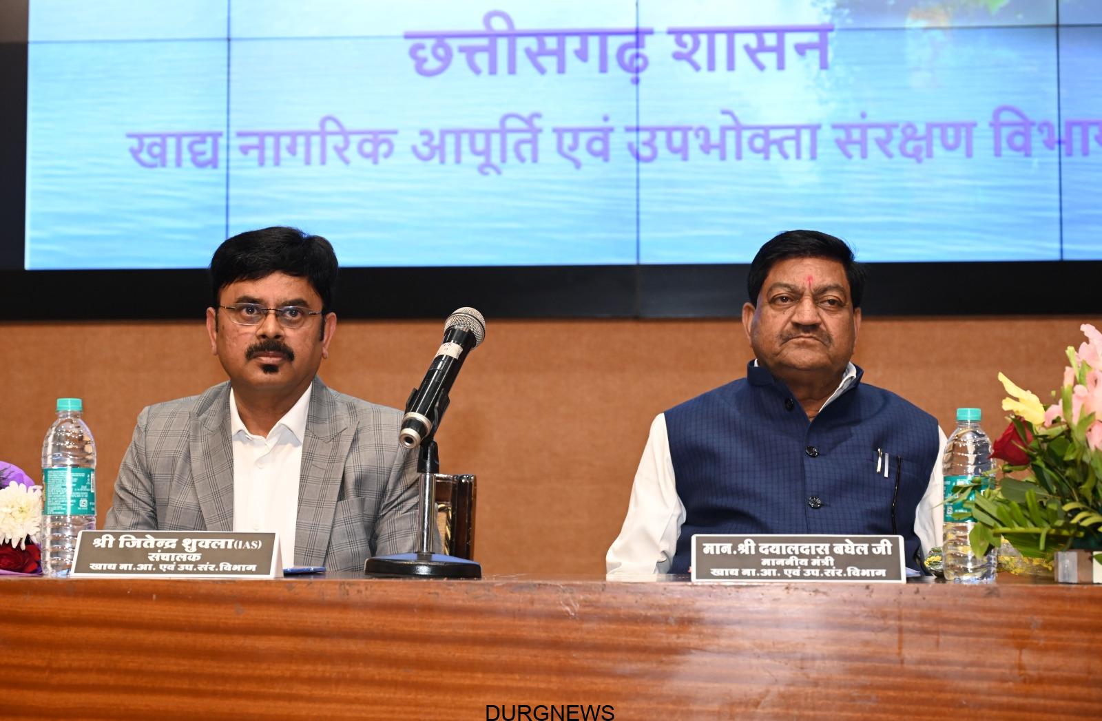 इस अवसर पर खाद्य विभाग के धर्मेश साहू प्रबंध संचालक मार्कफेड, प्रणव सिंह अतिरिक्त प्रबंध संचालक मार्कफेड तथा खाद्य विभाग से जीएस सिकरवार संयुक्त सचिव, राजीव जायसवाल अपर संचालक, जीएस पैकरा अपर संचालक एवं आनंद सोनी, तकनीकी निदेशक एन.आई.सी. एवं राज्य के समस्त जिलों के खाद्य नियंत्रक-अधिकारी, जिला प्रबंधक, नागरिक आपूर्ति निगम एवं जिला विपणन अधिकारी उपस्थित थे।