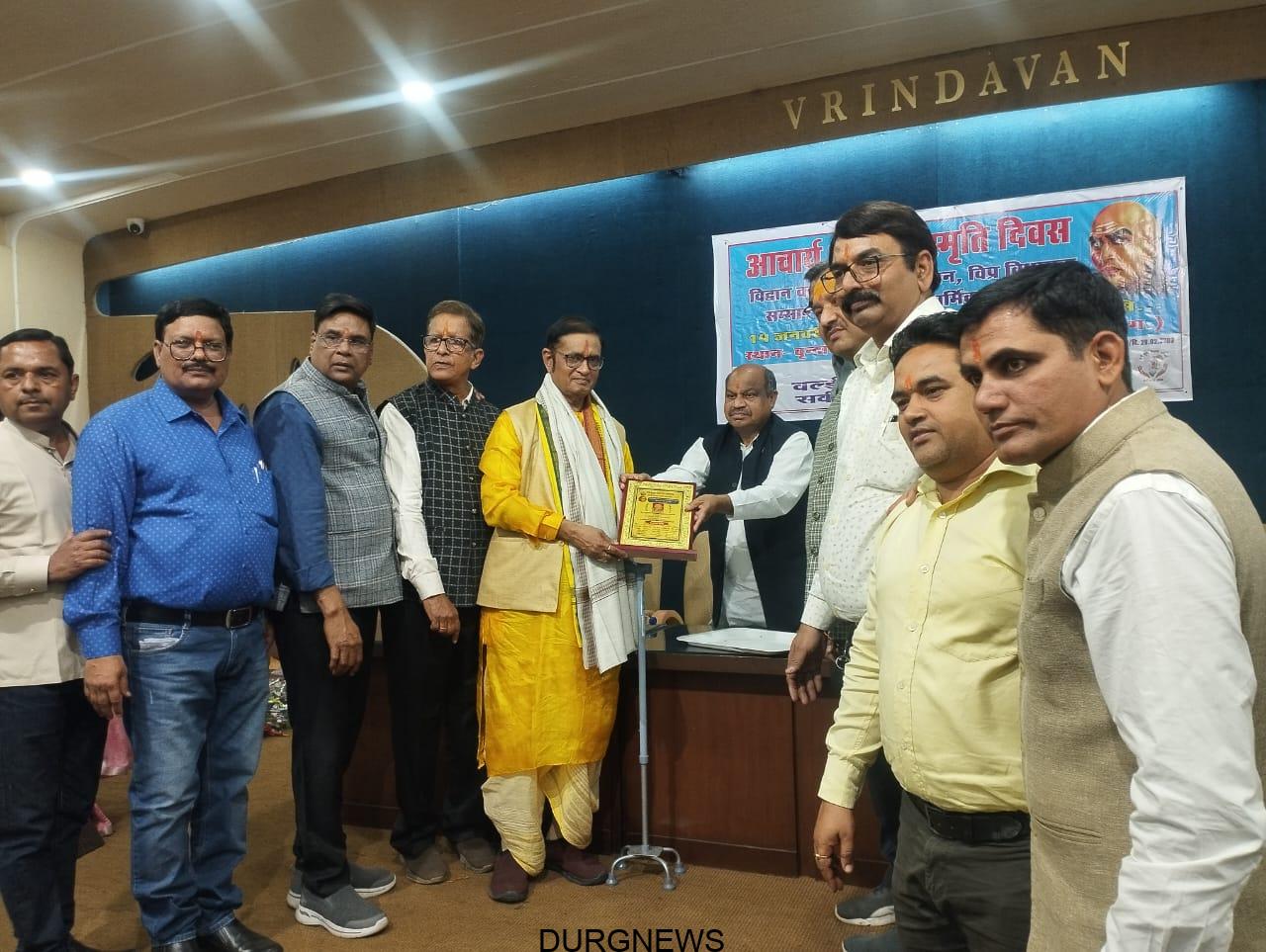 दुर्ग न्यूज़, 21 जनवरी। वर्ल्ड ब्राह्मण फेडरेशन छत्तीसगढ़ और सर्व युवा ब्राह्मण परिषद् छत्तीसगढ़ के संयुक्त तत्वावधान में आचार्य चाणक्य स्मृति दिवस का भव्य आयोजन विगत दिनों राजधानी रायपुर में किया गया। विप्र विधायकों के सम्मान, विद्वानों के व्याख्यानों के साथ सांस्कृतिक एवं धार्मिक प्रश्नोत्तरी के भी रोचक एवं ज्ञानवर्धक कार्यक्रम में सबने सक्रिय भागीदारी निभाई।